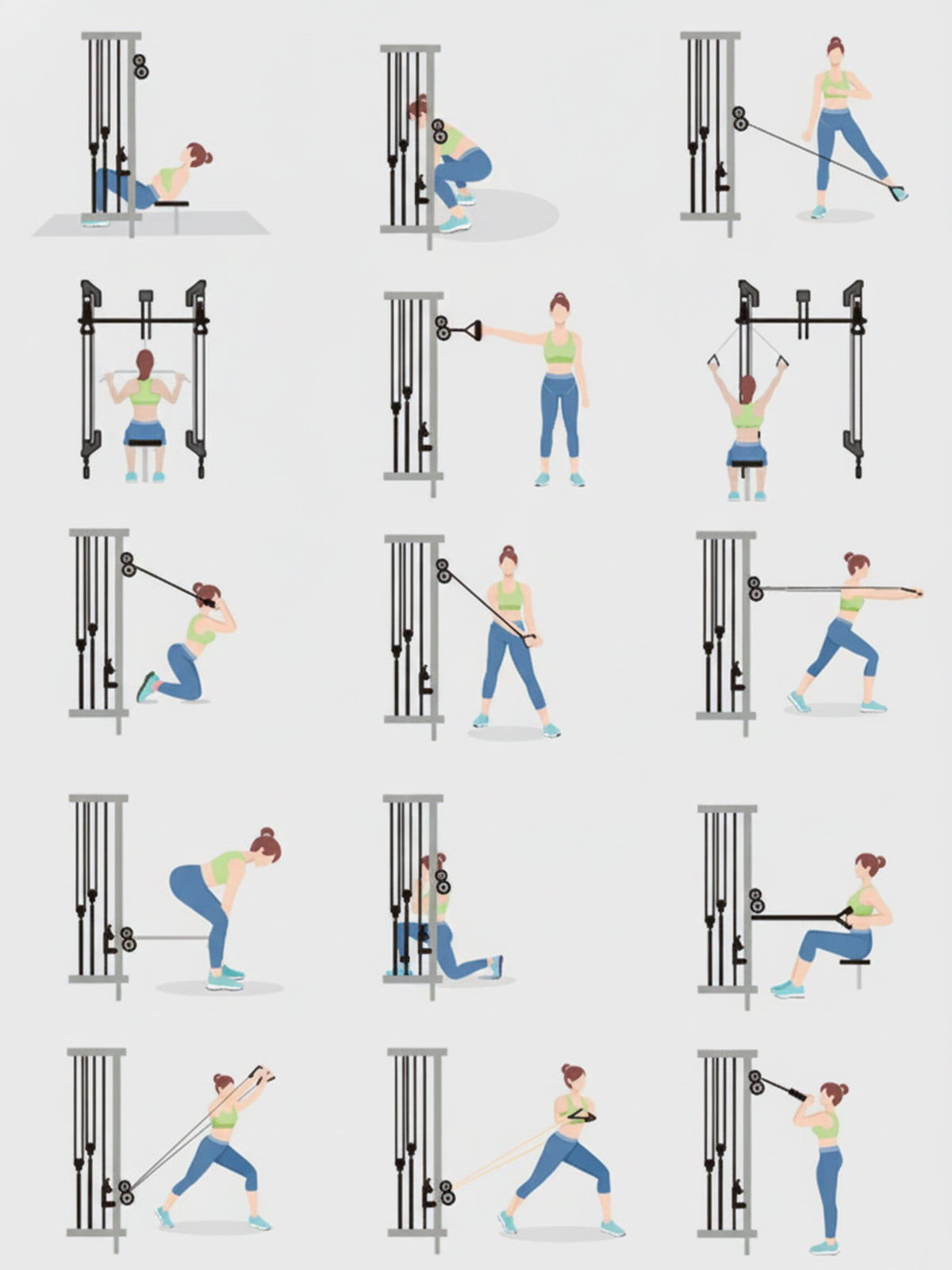You can perform a wide variety of cable exercises, such as the following, with many more options available: