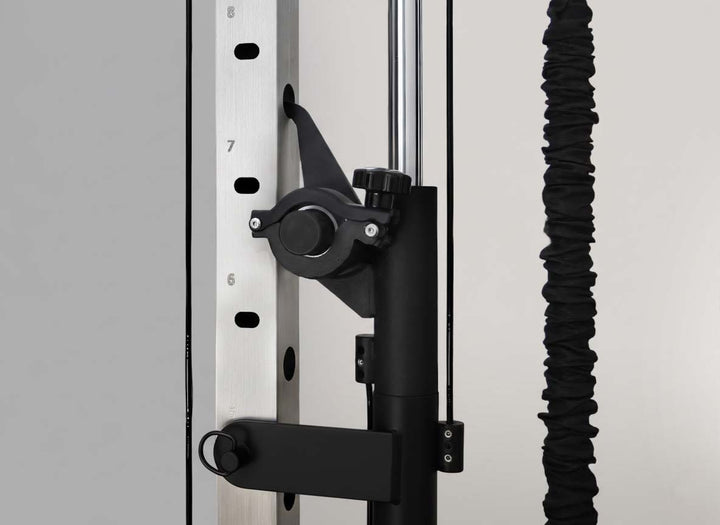 - Quiet pulley mechanism — smooth, silent operation during cable exercises (Smith excluded).